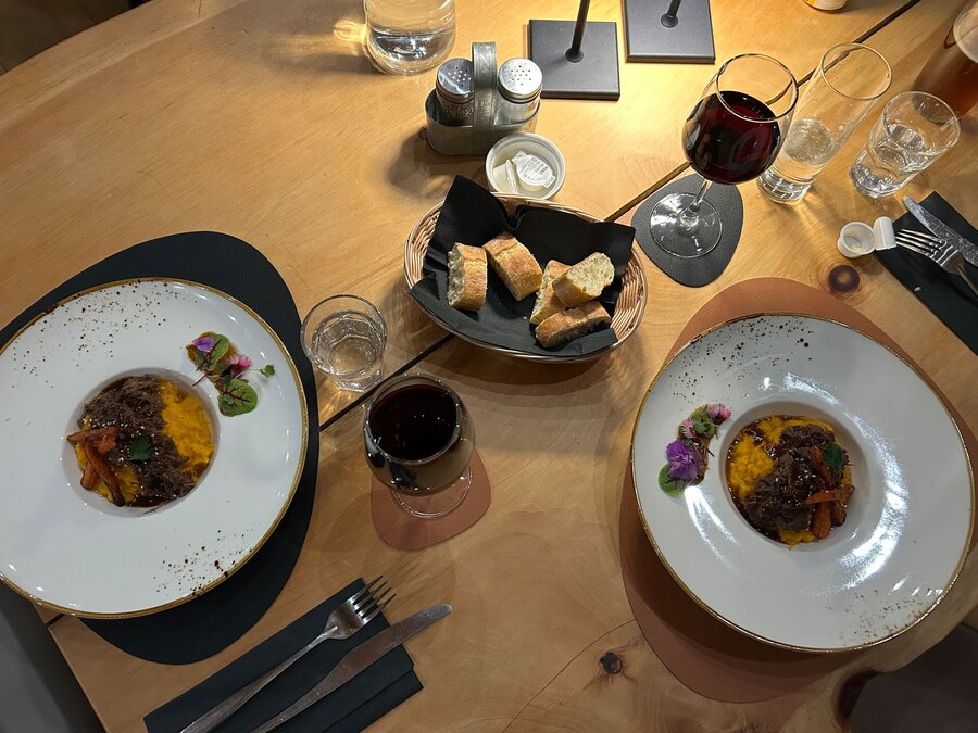De retour à l’auberge, nos guides nous saluent avant de s’affairer à servir les repas du midi aux clients présents. À force de voir les assiettes passer sous notre nez, on décide de se laisser tenter par un dîner avant de prendre la route du retour.