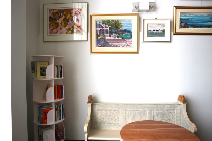Après une bonne nuit de sommeil, nous nous sommes dirigées vers la salle à café pour déjeuner. Le repas léger et en toute simplicité était parfait pour commencer la journée. Nous avons ensuite décidé d’aller prendre un café dans la nouvelle mezzanine qui se situe juste au-dessus de la salle du restaurant. Cette mezzanine est meublée avec des bancs, des tables et même des tableaux de peintres de la région qui ont été trouvés dans le sous-sol de l’auberge! Ces ajouts créent une ambiance très cosy et tranquille pour un petit café matinal ou même une lecture d’après-midi avec une vue magnifique sur le fjord.
