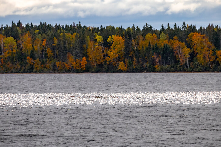 Mais au-delà de la littérature, l’automne y réserve un autre moment fort : la migration des oies blanches et des bernaches. Nous avons eu la chance d’en observer des milliers sur la rivière Péribonka. Un spectacle naturel, éphémère mais tellement grandiose.