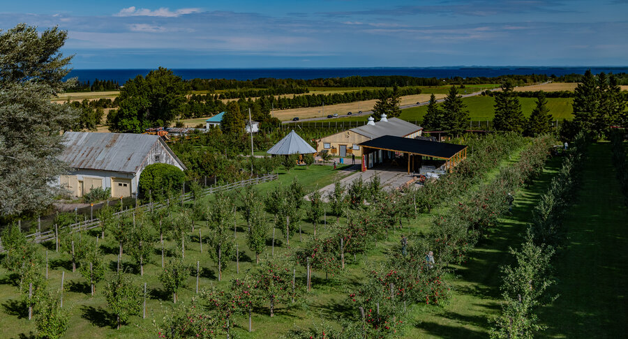 Sur la route, en direction de l’ouest du lac, je me suis arrêté au Verger Api-pomme à Métabetchouan. Richard, l’un des proprios, que j’ai rencontré dans le cadre de mon travail m’a fait visiter son verger biologique et ses installations; ruches, boutiques, tour d’observation, etc. J’ai terminé cette tournée du proprio en me régalant d’une excellente gaufre au miel — un vrai délice, mangé dehors, les deux pieds bien plantés dans l’herbe. En passant ils sont hôte Terego pour ceux que sa intéressent.