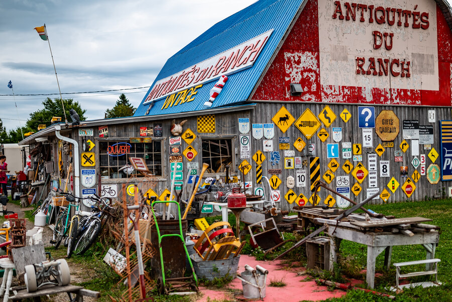 Toujours sur ma route direction Roberval, je fais une halte À Desbiens, j’ai pris le temps de fouiner chez un antiquaire du village. Il est directement sur le bord de la route, impossible de le manqué avec toute ses affiches de couleurs vives. C’est le genre d’arrêt parfait en vanlife : tu n’as pas d’horaire fixe, tu peux juste t’arrêter là où la curiosité te mène.