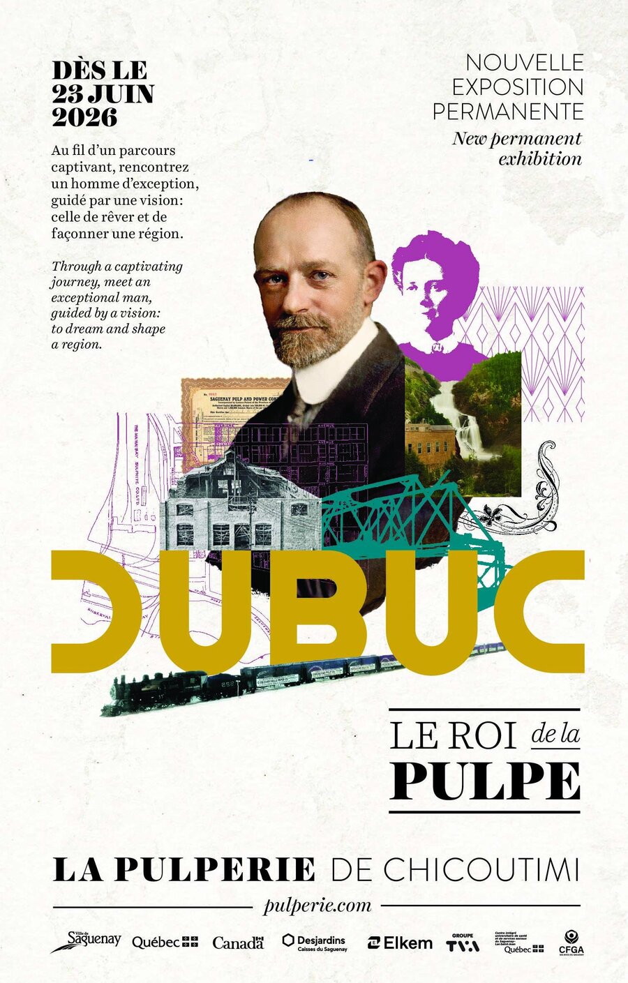 As of June 23, 2026, visitors will be able to discover DUBUC – The King of Pulp, a brand-new permanent exhibition dedicated to Julien‑Édouard‑Alfred Dubuc, one of the principal founders of La Pulperie and a visionary entrepreneur whose legacy is still strongly felt in Saguenay. Through an immersive exhibition path, visitors are invited to meet a man driven by bold ambition: the desire to dream and shape an entire region. A multi-minute immersive projection presented right at the entrance sets the tone for an exhibition rich in emotion and discovery.