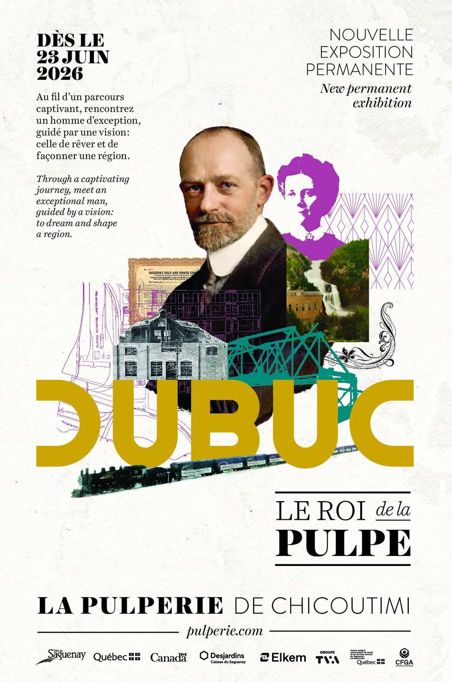 As of June 23, 2026, visitors will be able to discover DUBUC – The King of Pulp, a brand-new permanent exhibition dedicated to Julien‑Édouard‑Alfred Dubuc, one of the principal founders of La Pulperie and a visionary entrepreneur whose legacy is still strongly felt in Saguenay. Through an immersive exhibition path, visitors are invited to meet a man driven by bold ambition: the desire to dream and shape an entire region. A multi-minute immersive projection presented right at the entrance sets the tone for an exhibition rich in emotion and discovery.